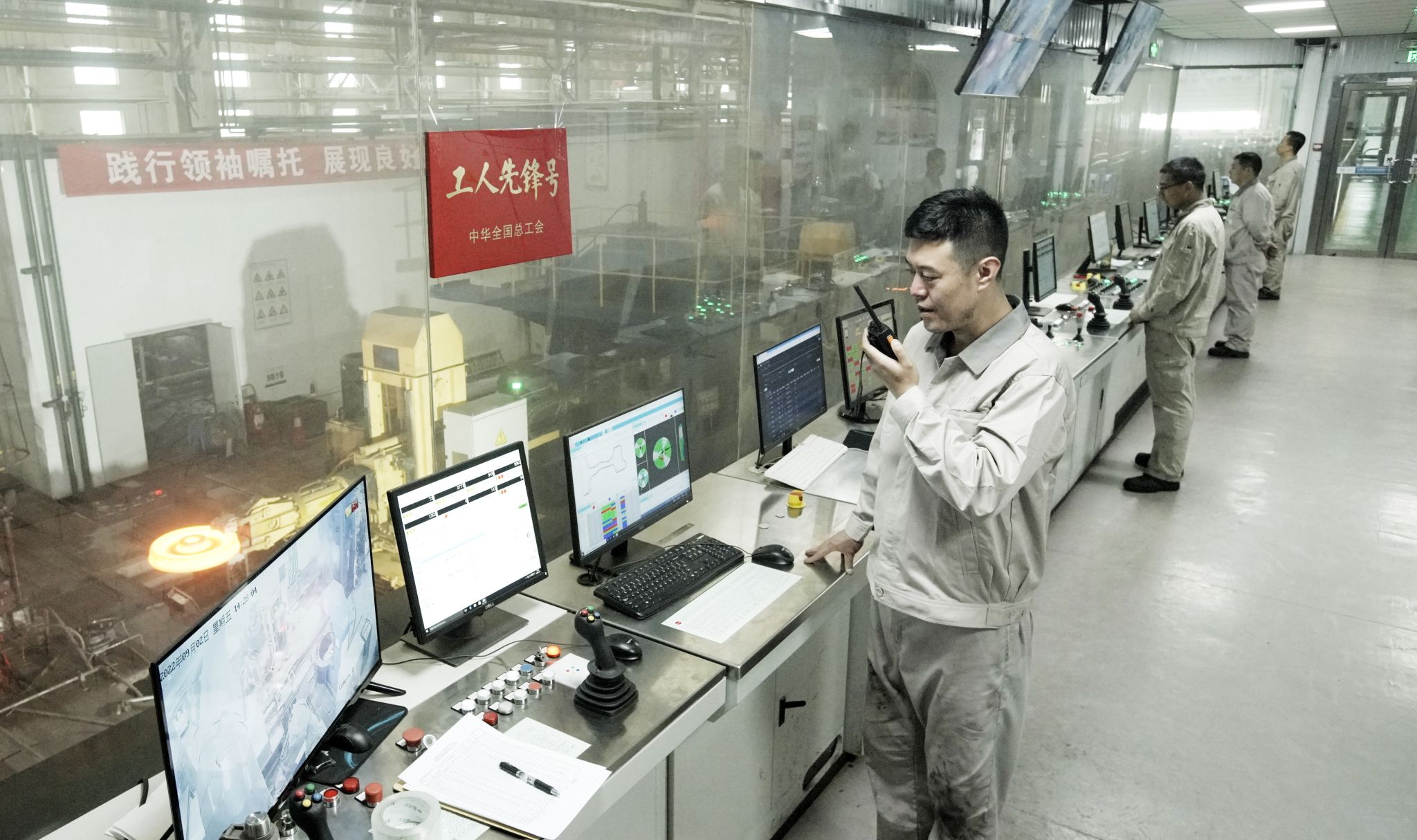 锻热工部负责车轮的加热、预成型、成型、冲孔、轧制和压弯及车轮扩氢、退火、淬火、正火和回火等工序。2019年锻热工部共生产车轮总数18万件左右,超额完成俄罗斯8万余件车轮交货任务。2020年不断优化浸入式淬火台满足美国轮箍的生产和交货需求,对喷淋淬火台进行升级改造。2021年工部不断统筹安排,合理优化设计,自发组成突击队,保证了项目“当年立项、当年实施、当年投产”,其中中径14米环形炉仅用时85天顺利交付使用,第一片热轧车轮于2021年12月31日成功下线。