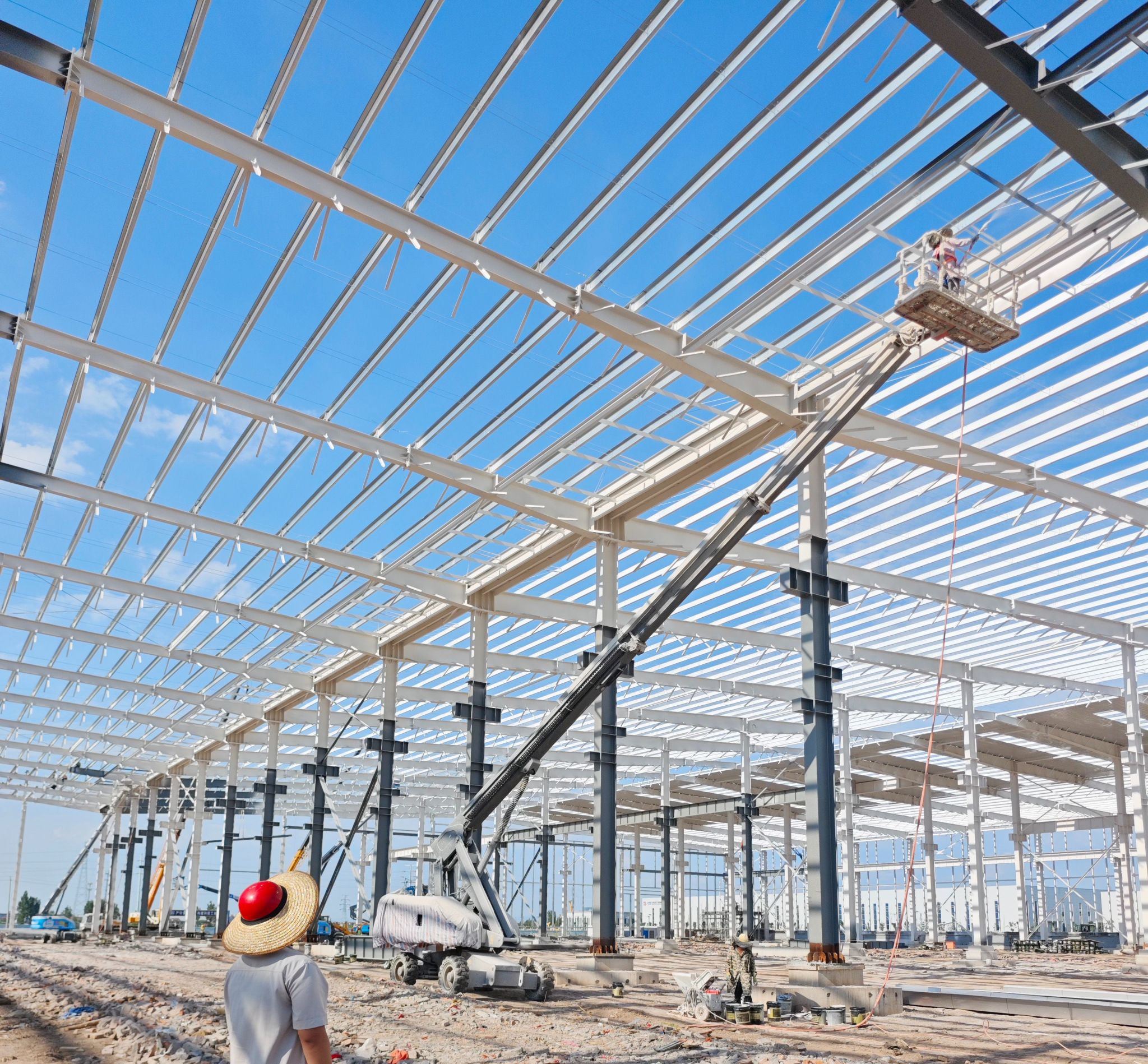 “从钢柱首吊以来,我们按照目标节点倒排工期,精细化组织、超常规安排,正在按照‘两个一百天’项目建设节点全力冲刺。”现场负责人王永斌干劲满满地说道。施工团队根据工程建设情况精细策划,对大型机械、吊索吊具等进行逐项验收、统一管理,确保吊装施工安全有序。为确保园区建设继续快速推进,项目组还同步建设配电室、空压站和综合站房,全力以赴推动项目建设提速增效。