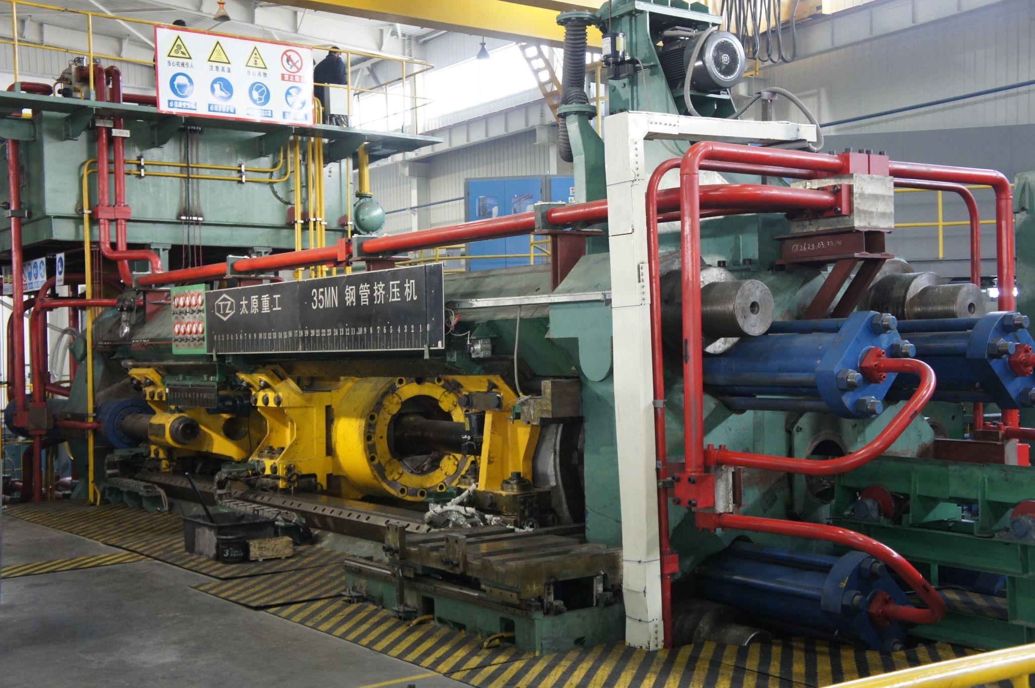 太重已经生产各类挤压机近400台(套),主要包括:铝、铜、黑色金属和炭素挤压机。其中,铝挤压机已形成8MN~360MN规格的系列产品。挤压设备具有易操作、易维护、低能耗、高产量、高质量等优点, 在中国大中型挤压机市场占有率约80%。