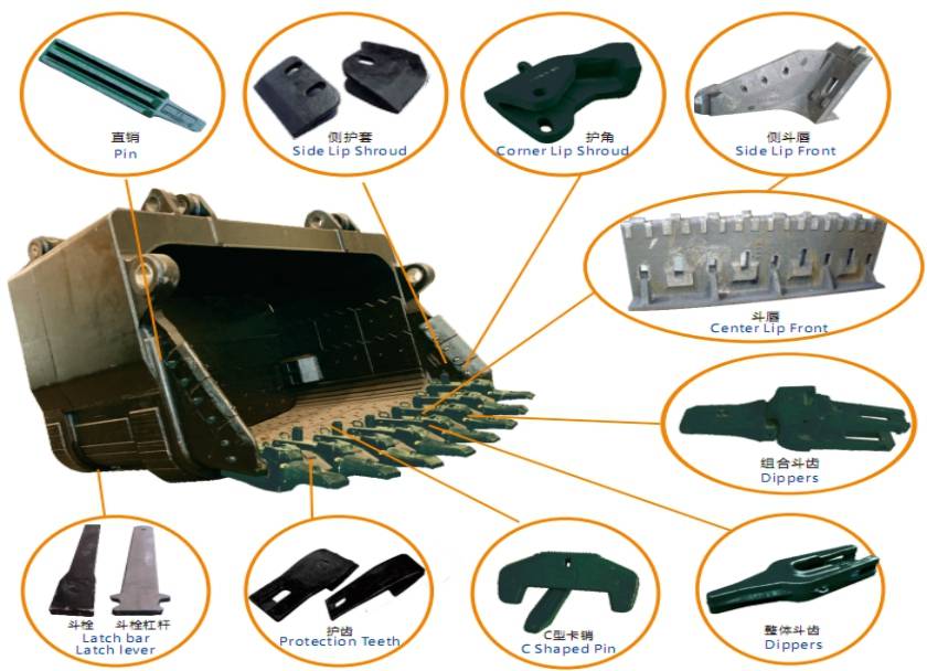 为公司WK系列挖掘机WK-10到WK-55,配套了履带、挖斗铸件(斗齿、护套、斗唇等)、托带、斗栓、斗栓插座及开斗杠杆等耐磨铸件