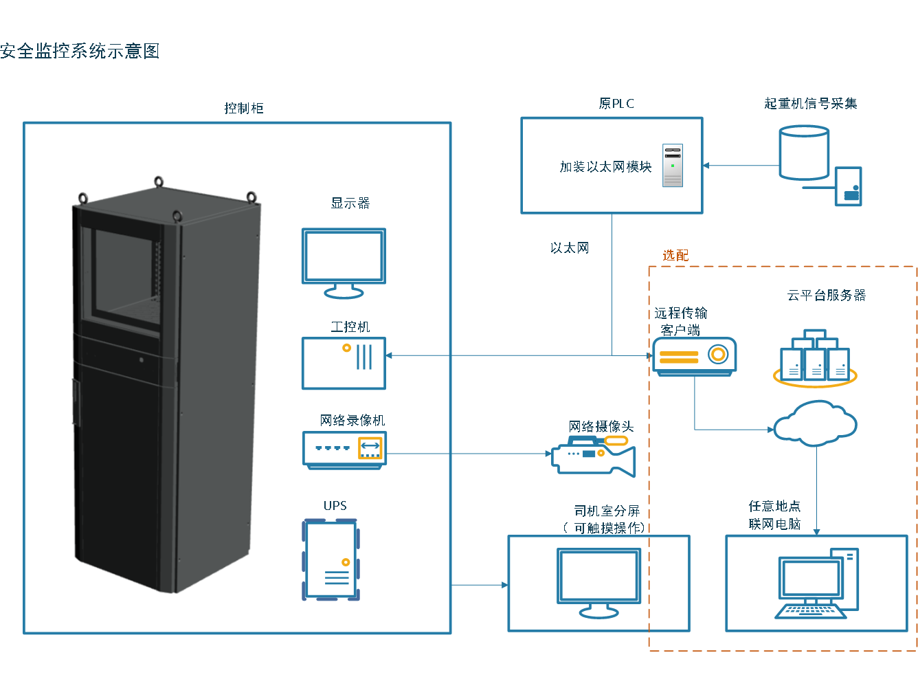 本系统是一个相对独立但又与起重机本体的电控系统紧密结合的设备。作为起重机安全运行的监控管理设备,能够准确、及时地测量、显示所属起重机的多种信息参数和图像等,以便操作者及时了解起重机运行情况,控制或停止机构的运行,保证起重机始终运行在安全、可靠的状态下。