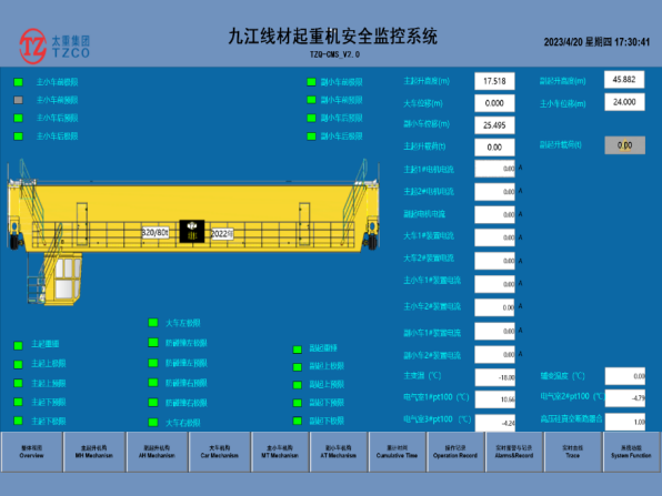系统支持以文本、动画等方式形象地描绘出起重机的全车总览画面和各机构分画面。