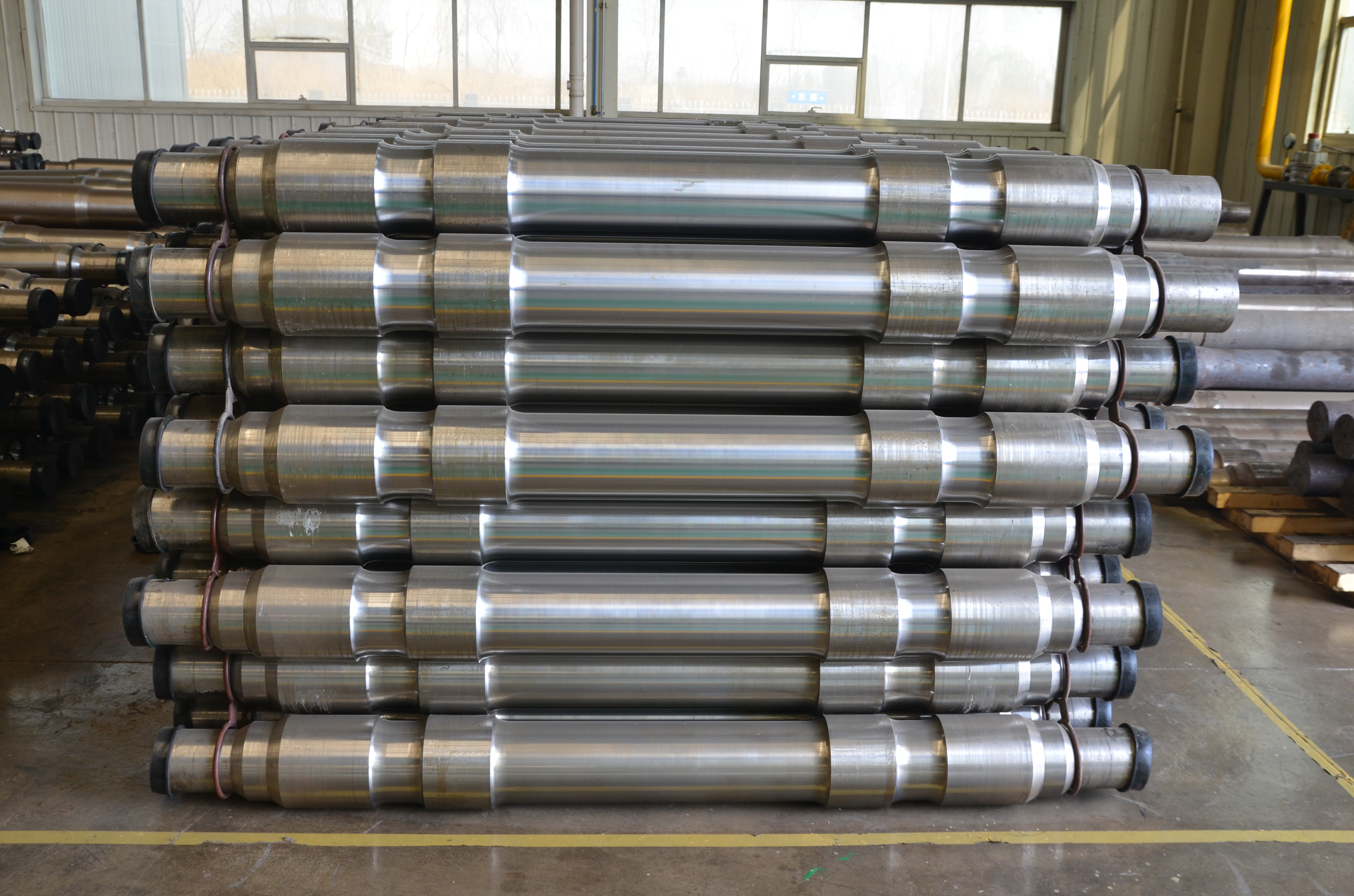 公司可生产Φ70mm~Φ350mm直径的碳钢、高合金钢、不锈钢和特种材料的轴类产品,主要产品有高速列车用车轴、动车组车轴、机车车轴、RF2型大直径重载货车车轴、RE2B型货车车轴、RD2型货车车轴、RD3等型号客车车轴;出口机车、客车、货车等宽轨、准轨、窄轨用铁路车轴产品。