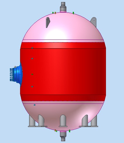 海洋装备用稳压器是一只立式圆筒形的高压容器,补偿回路冷却水变化引起的水容积变化和调节工作压力,防止一回路设备由于压力过高而损坏或压力过低引起燃料过热烧毁。