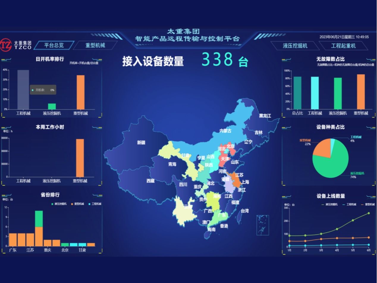 可实现高端装备数据采集与积累、远程运维服务、数字化展示、报警统计与分析、模块化分类分组、流转与运行分析、运行轨迹及回放、电子围栏、设备资产管理、行业信息收集与发布、营销与服务管理的高端装备数字化管理平台。